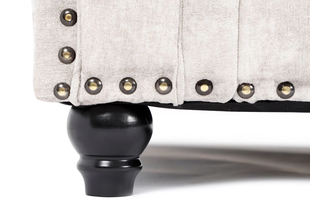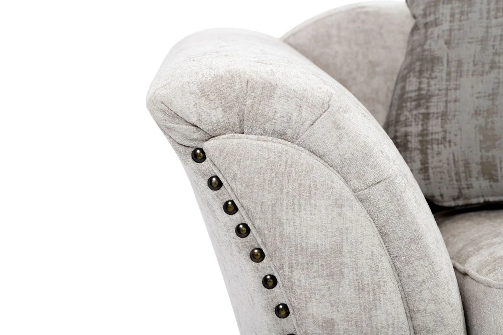 The Cambridge Sofa Set brings elegance and comfort into your home. Upholstered in a soft light fabric with stylish studded detailing and flared arms, it blends modern chic with timeless charm.